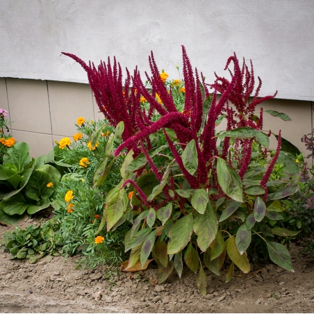augalas tvirtas, žiedynai - tamsiai raudonos šluotelės, tinka grupėms, džiovinimui.
